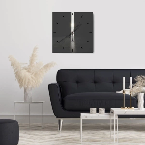 O relógio é feito de vidro de 4mm de espessura. A tecnologia de relógio está em conformidade com a classe de segurança 2B2 de acordo com a norma PN-EN 12600:2004, o que garante resistência ao impacto. O relógio em vidro está pronto para ser pendurado – possui um gancho de metal montado na parte de trás do relógio e um espaçador de espuma, que regula a distância uniforme entre o relógio e a parede. O relógio tem um mecanismo de fluxo silencioso alimentado por uma bateria de 1,5 V - bateria AA (a bateria não está incluída).