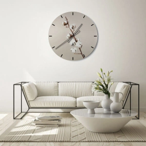 O relógio é feito de vidro de 4mm de espessura. A tecnologia de relógio está em conformidade com a classe de segurança 2B2 de acordo com a norma PN-EN 12600:2004, o que garante resistência ao impacto. O relógio em vidro está pronto para ser pendurado – possui um gancho de metal montado na parte de trás do relógio e um espaçador de espuma, que regula a distância uniforme entre o relógio e a parede. O relógio tem um mecanismo de fluxo silencioso alimentado por uma bateria de 1,5 V - bateria AA (a bateria não está incluída).