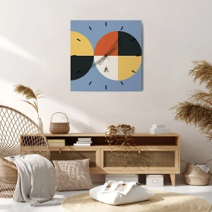 O relógio é feito de vidro de 4mm de espessura. A tecnologia de relógio está em conformidade com a classe de segurança 2B2 de acordo com a norma PN-EN 12600:2004, o que garante resistência ao impacto. O relógio em vidro está pronto para ser pendurado – possui um gancho de metal montado na parte de trás do relógio e um espaçador de espuma, que regula a distância uniforme entre o relógio e a parede. O relógio tem um mecanismo de fluxo silencioso alimentado por uma bateria de 1,5 V - bateria AA (a bateria não está incluída).