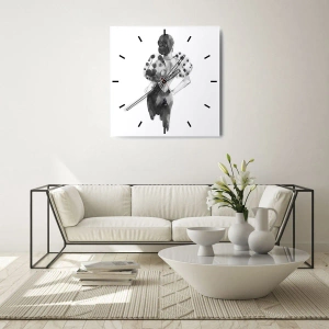 O relógio é feito de vidro de 4mm de espessura. A tecnologia de relógio está em conformidade com a classe de segurança 2B2 de acordo com a norma PN-EN 12600:2004, o que garante resistência ao impacto. O relógio em vidro está pronto para ser pendurado – possui um gancho de metal montado na parte de trás do relógio e um espaçador de espuma, que regula a distância uniforme entre o relógio e a parede. O relógio tem um mecanismo de fluxo silencioso alimentado por uma bateria de 1,5 V - bateria AA (a bateria não está incluída).