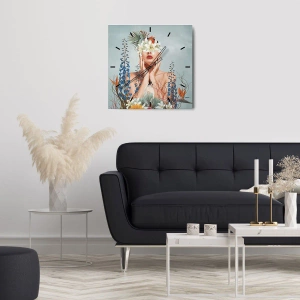 Relógio de parede - Relógio em vidro - Mulher – flor - 30x30 cm