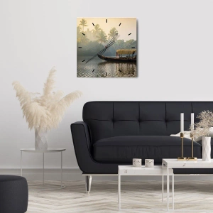 Relógio de parede - Relógio em vidro - Casa no rio - 40x40 cm