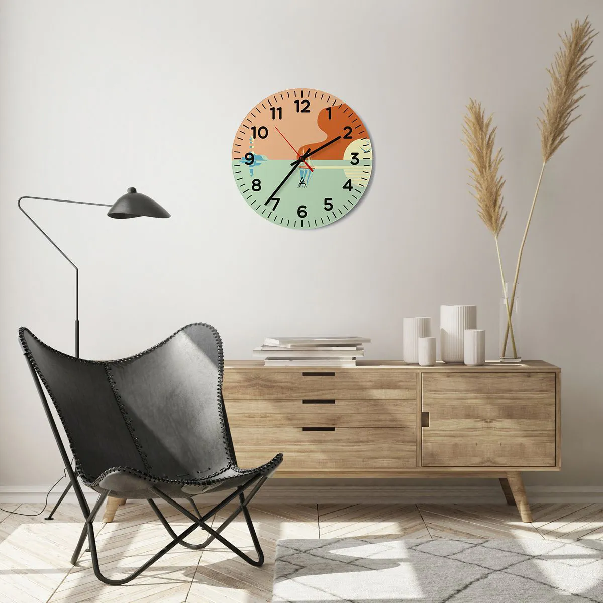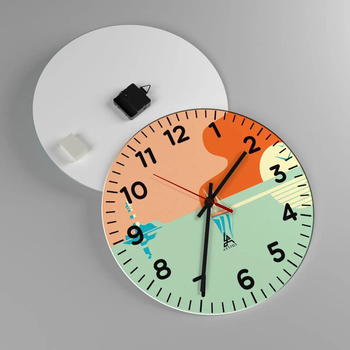 O relógio é feito de vidro durável de 4 mm de espessura. O vidro retém as cores naturais da impressão