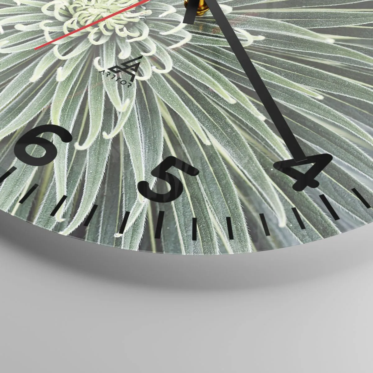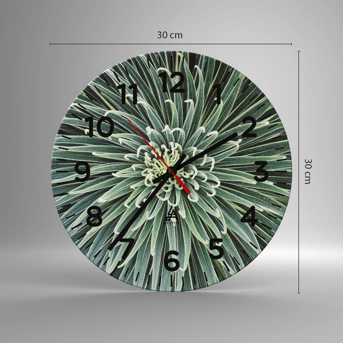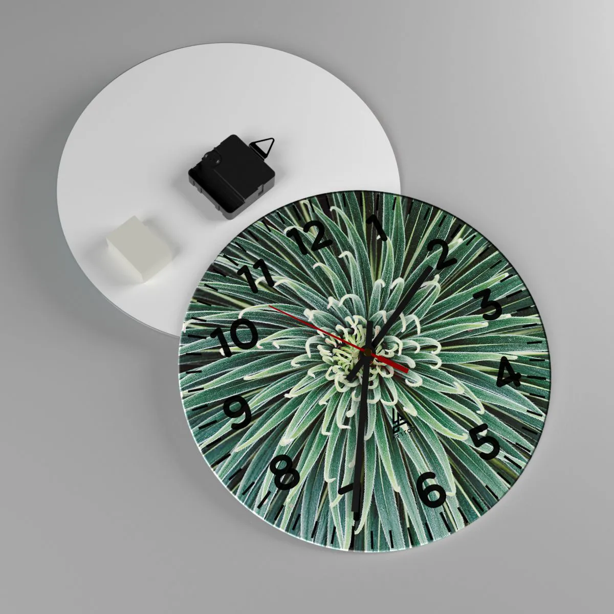 O relógio é feito de vidro de 4mm de espessura. A tecnologia de relógio está em conformidade com a classe de segurança 2B2 de acordo com a norma PN-EN 12600:2004, o que garante resistência ao impacto. O relógio em vidro está pronto para ser pendurado – possui um gancho de metal montado na parte de trás do relógio e um espaçador de espuma, que regula a distância uniforme entre o relógio e a parede. O relógio tem um mecanismo de fluxo silencioso alimentado por uma bateria de 1,5 V - bateria AA (a bateria não está incluída).