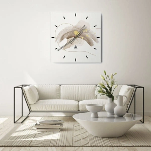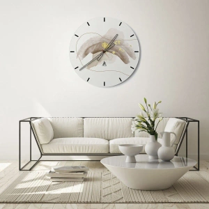 O relógio é feito de vidro de 4mm de espessura. A tecnologia de relógio está em conformidade com a classe de segurança 2B2 de acordo com a norma PN-EN 12600:2004, o que garante resistência ao impacto. O relógio em vidro está pronto para ser pendurado – possui um gancho de metal montado na parte de trás do relógio e um espaçador de espuma, que regula a distância uniforme entre o relógio e a parede. O relógio tem um mecanismo de fluxo silencioso alimentado por uma bateria de 1,5 V - bateria AA (a bateria não está incluída).
