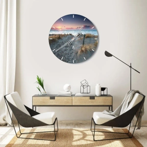 O relógio é feito de vidro de 4mm de espessura. A tecnologia de relógio está em conformidade com a classe de segurança 2B2 de acordo com a norma PN-EN 12600:2004, o que garante resistência ao impacto. O relógio em vidro está pronto para ser pendurado – possui um gancho de metal montado na parte de trás do relógio e um espaçador de espuma, que regula a distância uniforme entre o relógio e a parede. O relógio tem um mecanismo de fluxo silencioso alimentado por uma bateria de 1,5 V - bateria AA (a bateria não está incluída).