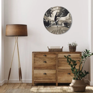 O relógio é feito de vidro de 4mm de espessura. A tecnologia de relógio está em conformidade com a classe de segurança 2B2 de acordo com a norma PN-EN 12600:2004, o que garante resistência ao impacto. O relógio em vidro está pronto para ser pendurado – possui um gancho de metal montado na parte de trás do relógio e um espaçador de espuma, que regula a distância uniforme entre o relógio e a parede. O relógio tem um mecanismo de fluxo silencioso alimentado por uma bateria de 1,5 V - bateria AA (a bateria não está incluída).