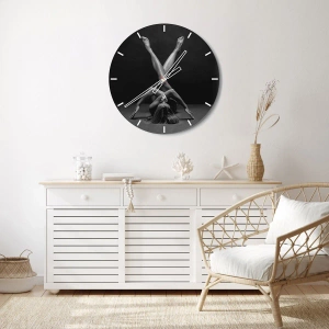 O relógio é feito de vidro de 4mm de espessura. A tecnologia de relógio está em conformidade com a classe de segurança 2B2 de acordo com a norma PN-EN 12600:2004, o que garante resistência ao impacto. O relógio em vidro está pronto para ser pendurado – possui um gancho de metal montado na parte de trás do relógio e um espaçador de espuma, que regula a distância uniforme entre o relógio e a parede. O relógio tem um mecanismo de fluxo silencioso alimentado por uma bateria de 1,5 V - bateria AA (a bateria não está incluída).