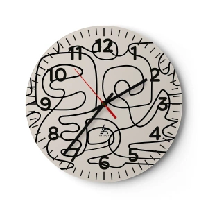 O relógio é feito de vidro de 4mm de espessura. A tecnologia de relógio está em conformidade com a classe de segurança 2B2 de acordo com a norma PN-EN 12600:2004, o que garante resistência ao impacto. O relógio em vidro está pronto para ser pendurado – possui um gancho de metal montado na parte de trás do relógio e um espaçador de espuma, que regula a distância uniforme entre o relógio e a parede. O relógio tem um mecanismo de fluxo silencioso alimentado por uma bateria de 1,5 V - bateria AA (a bateria não está incluída).