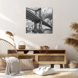 Uma ponte contra o horizonte da cidade em preto e branco é o tema principal deste elegante relógio de parede. Feito em vidro de 30x30 cm, ele se encaixa perfeitamente nos estilos minimalista e industrial, conferindo aos interiores um caráter único.
