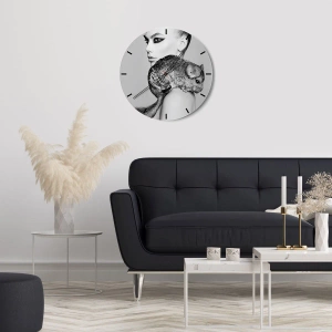 Senhora com Chinchila é um relógio de parede extraordinário que combina elegância e sutileza com um motivo artístico original. O mostrador do relógio retrata o retrato de uma mulher com uma chinchila, em tons de preto e branco que enfatizam contrastes e detalhes. A composição atrai o olhar e confere ao interior um caráter único.