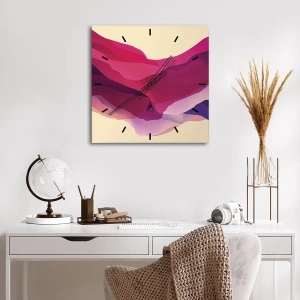 Ondas Roxas é um relógio de parede com um padrão abstrato exclusivo em tons de rosa e roxo que traz aconchego e elegância a qualquer ambiente. Delicadas transições de cores e uma composição harmoniosa fazem deste relógio um elemento decorativo prático e artístico. Ele combina perfeitamente com arranjos modernos e minimalistas.