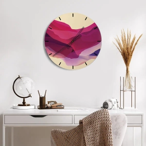 - Este relógio de parede redondo de 30x30 cm apresenta um design abstrato em tons de rosa e roxo. É o complemento perfeito para interiores modernos e minimalistas.
