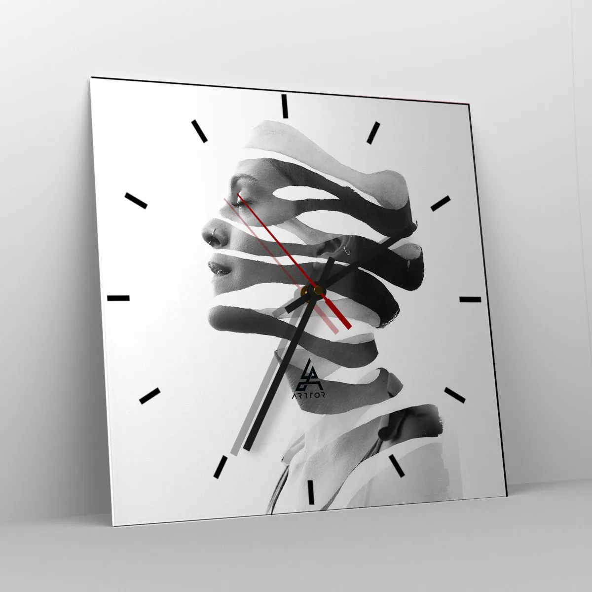 Relógio de parede - Relógio em vidro - Retrato surrealista - 40x40 cm