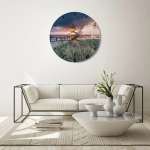 Relógio de parede - Relógio em vidro - Uma vista do cais ao pôr do sol com ervas em primeiro plano - 30x30cm - O vento não leva - Decoração de parede moderna para a sala de estar, cozinha e quarto ARTTOR