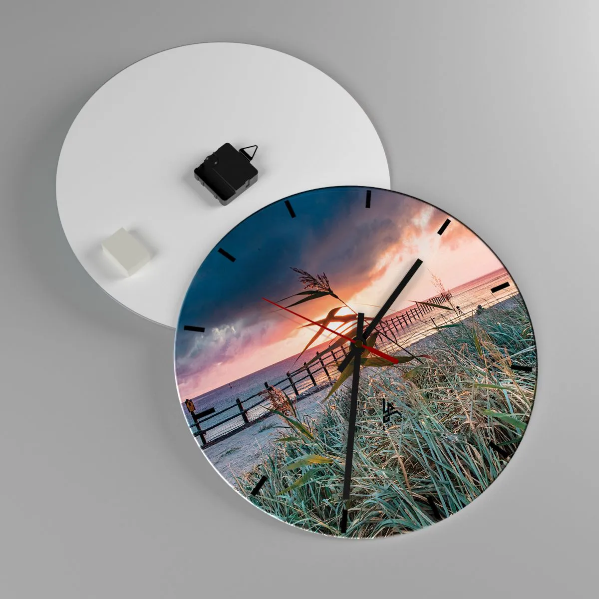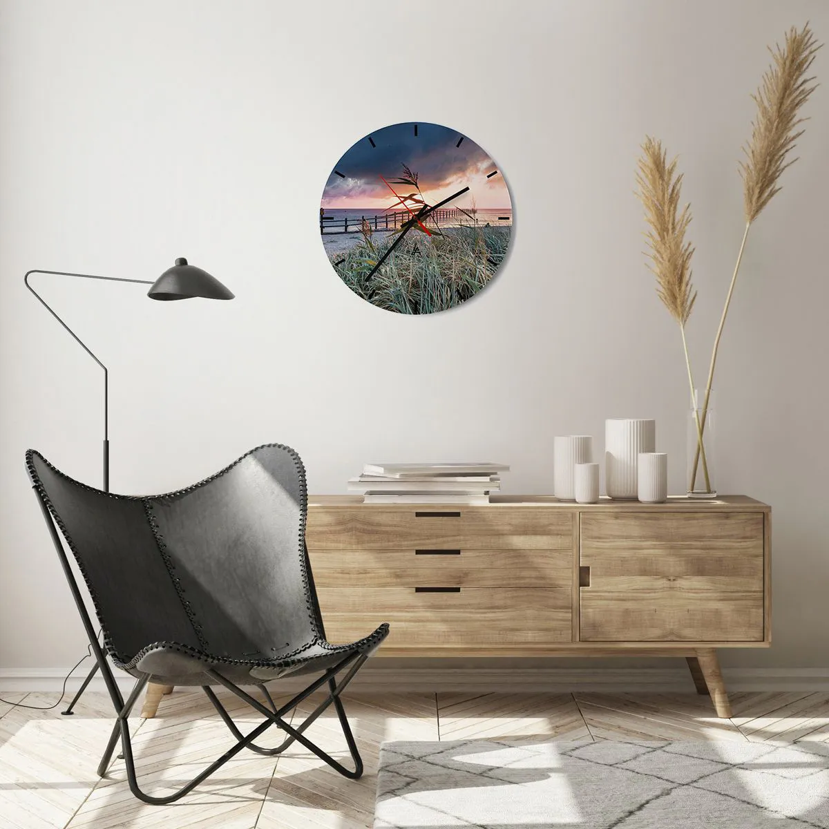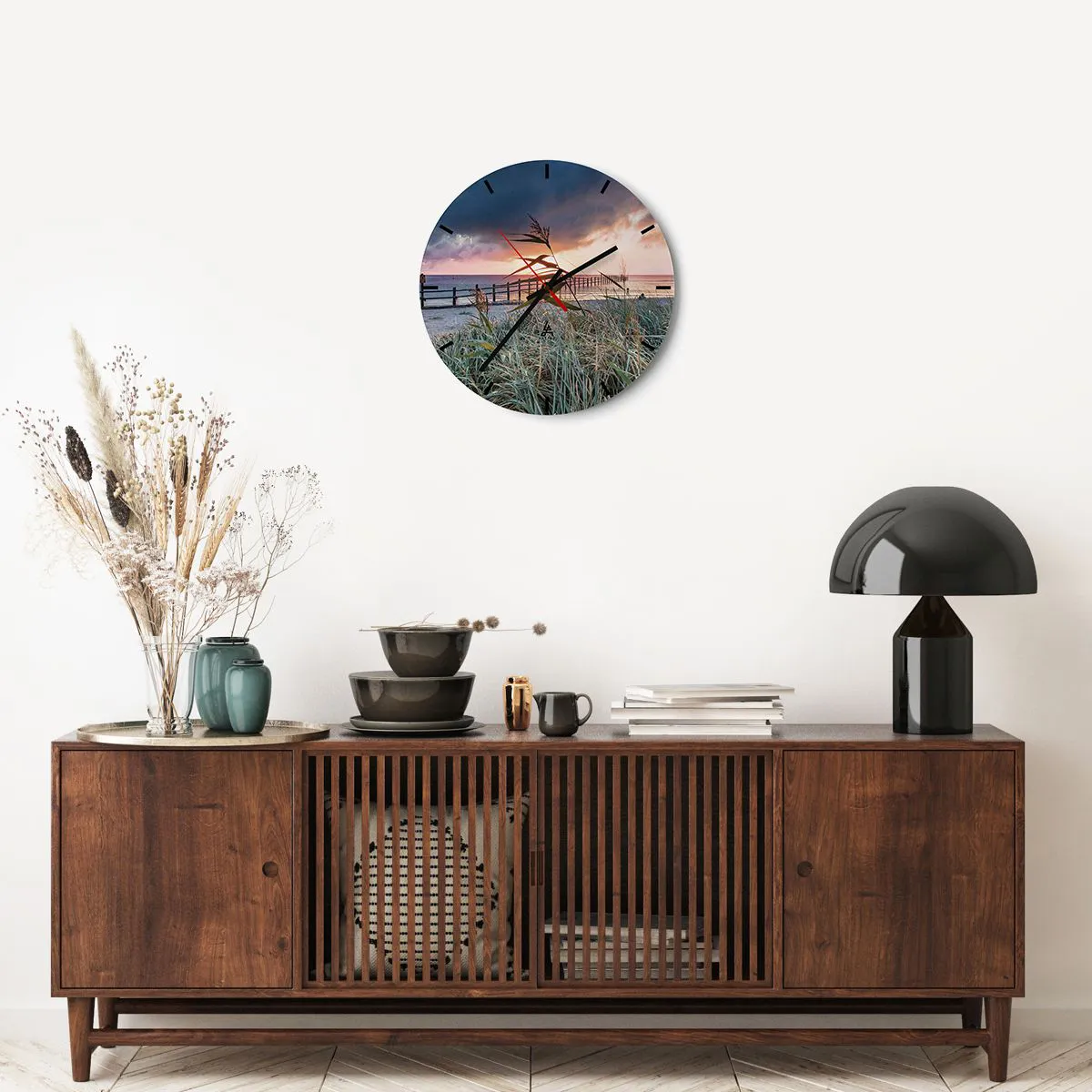 O relógio é feito de vidro durável de 4 mm de espessura. O vidro retém as cores naturais da impressão