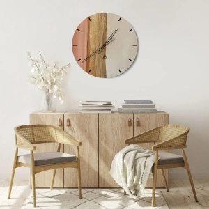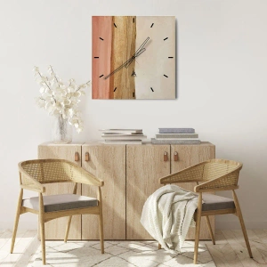 Relógio de parede - Relógio em vidro - Listras verticais em tons de bege, madeira e terracota - 30x30cm - Composição vertical - Decoração de parede moderna para a sala de estar, cozinha e quarto ARTTOR