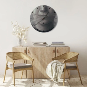 O relógio é feito de vidro de 4mm de espessura. A tecnologia de relógio está em conformidade com a classe de segurança 2B2 de acordo com a norma PN-EN 12600:2004, o que garante resistência ao impacto. O relógio em vidro está pronto para ser pendurado – possui um gancho de metal montado na parte de trás do relógio e um espaçador de espuma, que regula a distância uniforme entre o relógio e a parede. O relógio tem um mecanismo de fluxo silencioso alimentado por uma bateria de 1,5 V - bateria AA (a bateria não está incluída).