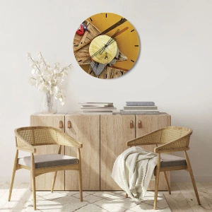 O relógio é feito de vidro de 4mm de espessura. A tecnologia de relógio está em conformidade com a classe de segurança 2B2 de acordo com a norma PN-EN 12600:2004, o que garante resistência ao impacto. O relógio em vidro está pronto para ser pendurado – possui um gancho de metal montado na parte de trás do relógio e um espaçador de espuma, que regula a distância uniforme entre o relógio e a parede. O relógio tem um mecanismo de fluxo silencioso alimentado por uma bateria de 1,5 V - bateria AA (a bateria não está incluída).