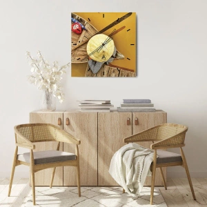 Relógio de parede - Relógio em vidro - Pessoa de chapéu em barco de madeira no rio amarelo - 30x30cm - A vida no rio amarelo - Decoração de parede moderna para a sala de estar, cozinha e quarto ARTTOR