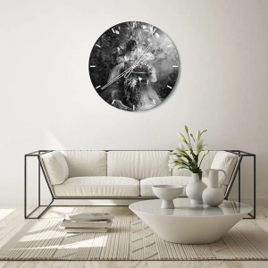 O relógio é feito de vidro de 4mm de espessura. A tecnologia de relógio está em conformidade com a classe de segurança 2B2 de acordo com a norma PN-EN 12600:2004, o que garante resistência ao impacto. O relógio em vidro está pronto para ser pendurado – possui um gancho de metal montado na parte de trás do relógio e um espaçador de espuma, que regula a distância uniforme entre o relógio e a parede. O relógio tem um mecanismo de fluxo silencioso alimentado por uma bateria de 1,5 V - bateria AA (a bateria não está incluída).
