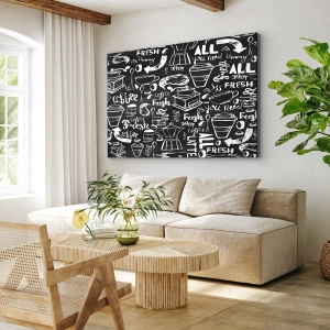 Quadro em tela - Gráficos elegantes de café em um fundo preto - 70x50cm - Tudo o que precisa é... - Decoração de parede moderna para a sala de estar e quarto ARTTOR