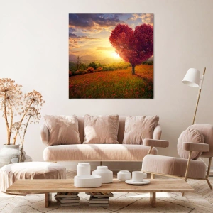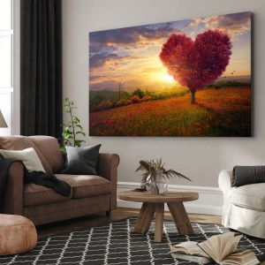 Quadro em tela - Árvore em forma de coração ao pôr do sol - 70x50cm - De tocar o coração - Decoração de parede moderna para a sala de estar e quarto ARTTOR