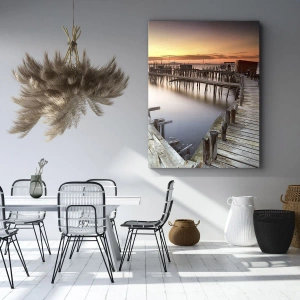 A tela é esticada na moldura. Os lados e bordas são impressos para criar uma continuação da imagem. O quadro está pronto para ser pendurado na parede. Cada produto tem um gancho ligado à moldura e um conjunto de montagem (parafuso + cavilha).