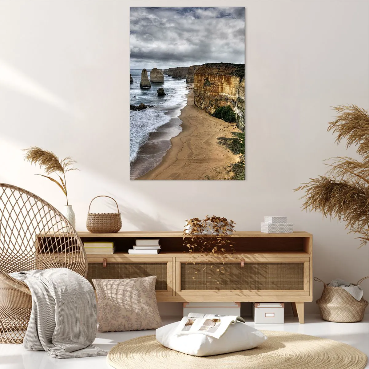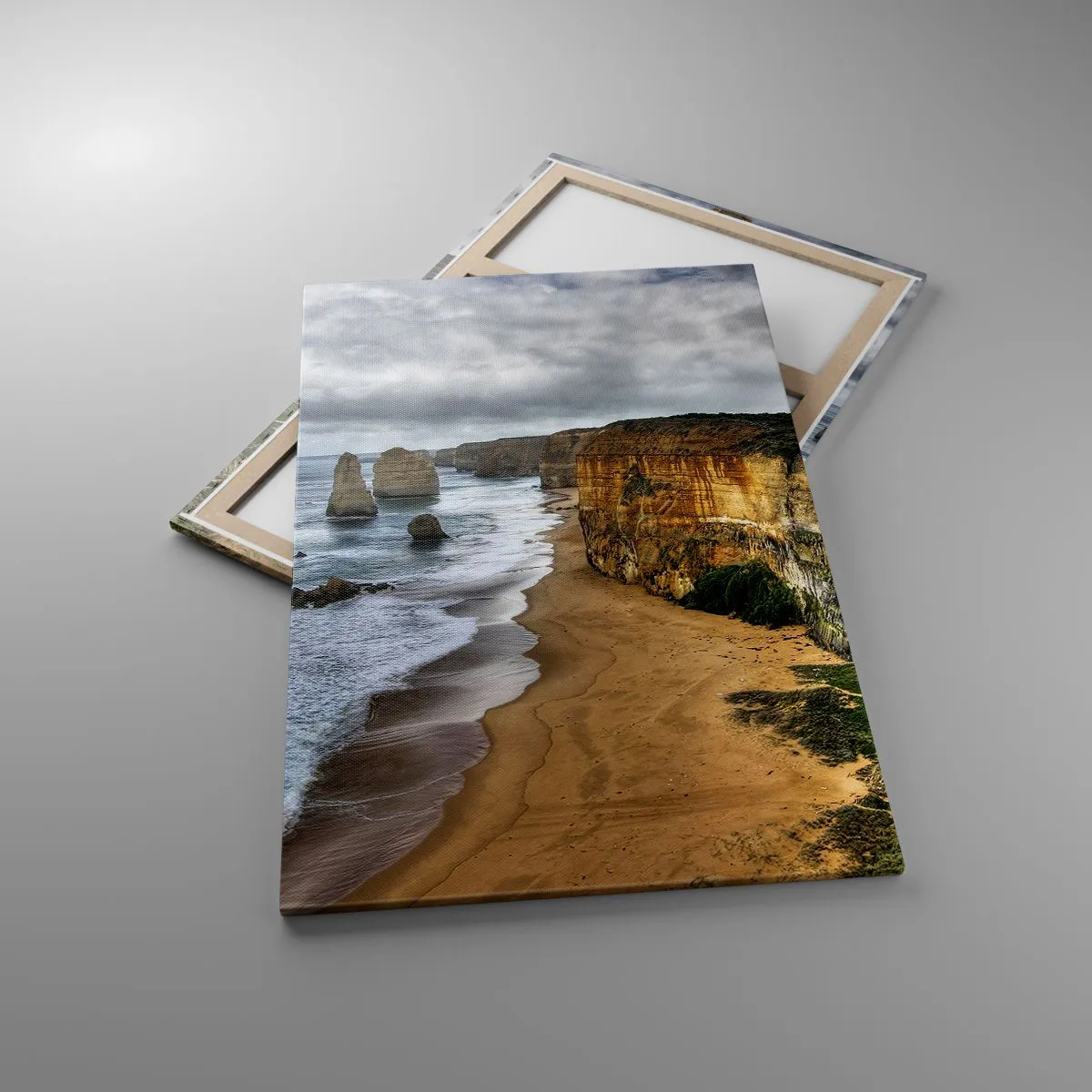 A tela é esticada na moldura. Os lados e bordas são impressos para criar uma continuação da imagem. O quadro está pronto para ser pendurado na parede. Cada produto tem um gancho ligado à moldura e um conjunto de montagem (parafuso + cavilha).