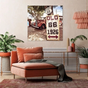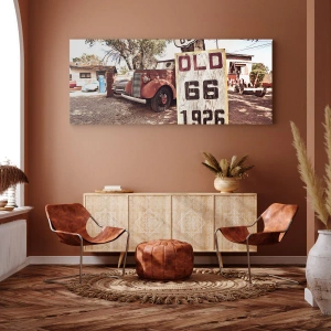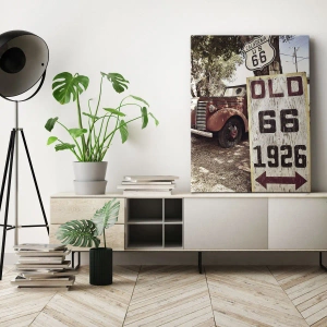 • Rota 66, Oldschool, Carro Velho, Automotivo, Viagens, Vintage e retrô, Para o escritório, Para o escritório, Para a sala de jantar, Para a sala dos jovens, Para o hall, Para a sala de estar, Para o quarto, Marrom, Vertical