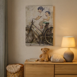 A tela é esticada na moldura. Os lados e bordas são impressos para criar uma continuação da imagem. O quadro está pronto para ser pendurado na parede. Cada produto tem um gancho ligado à moldura e um conjunto de montagem (parafuso + cavilha).