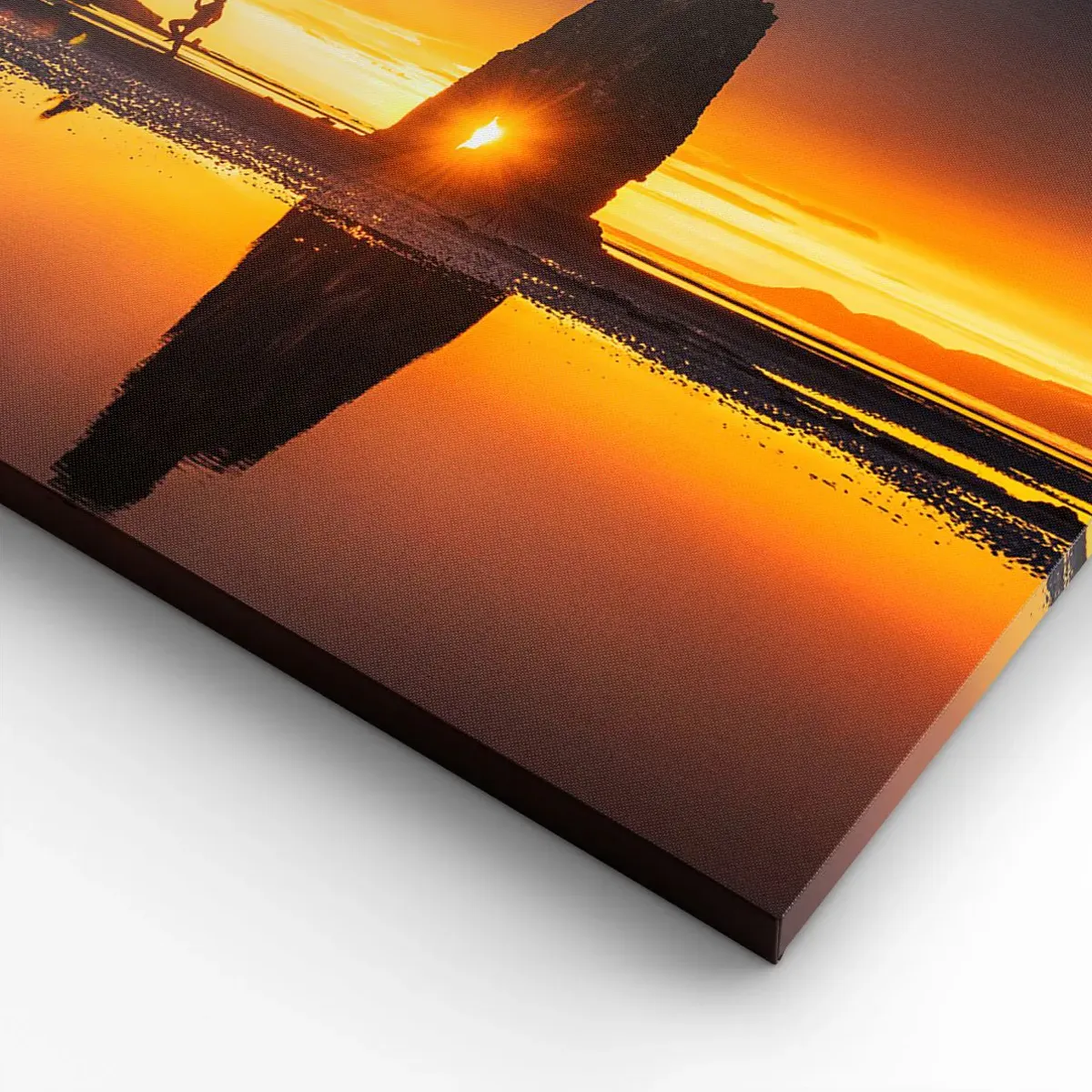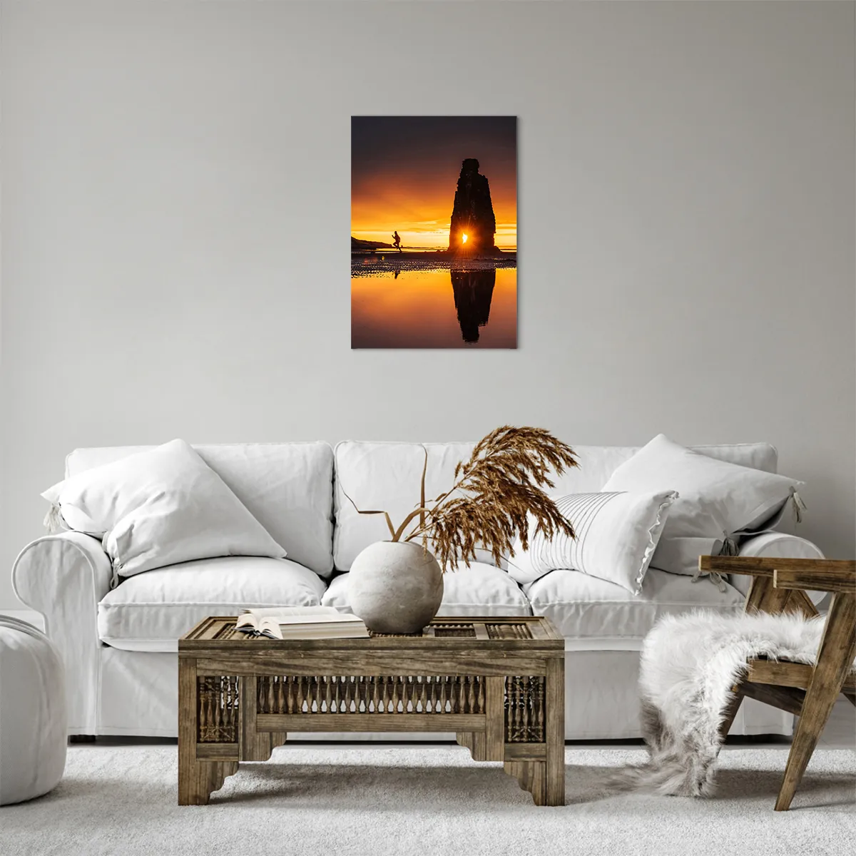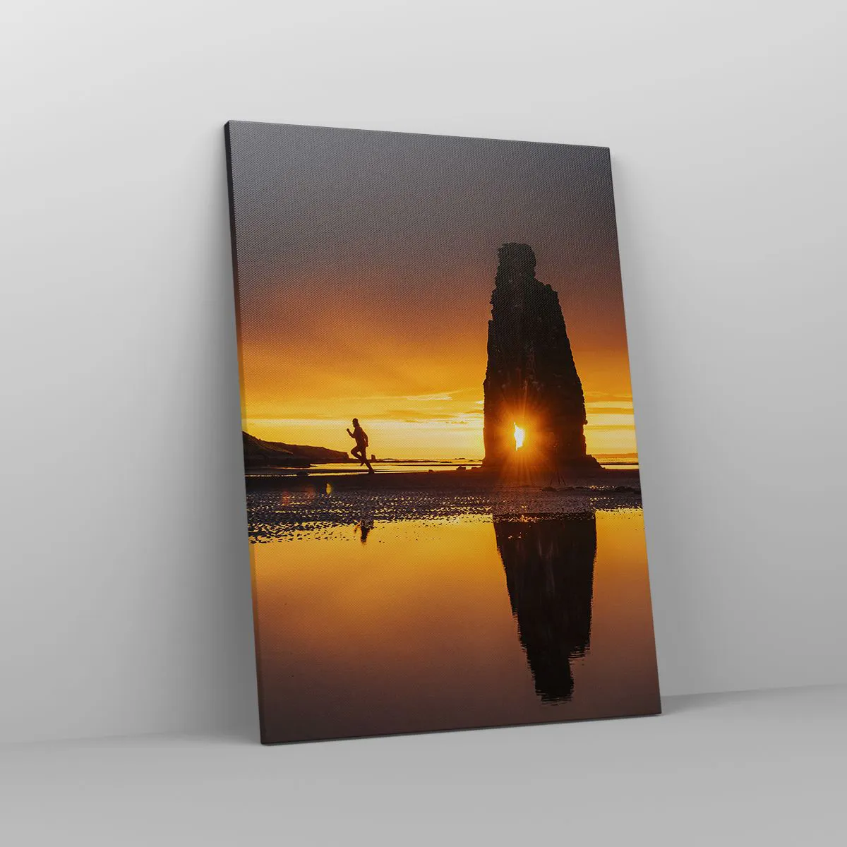 A tela é esticada na moldura. Os lados e bordas são impressos para criar uma continuação da imagem. O quadro está pronto para ser pendurado na parede. Cada produto tem um gancho ligado à moldura e um conjunto de montagem (parafuso + cavilha).
