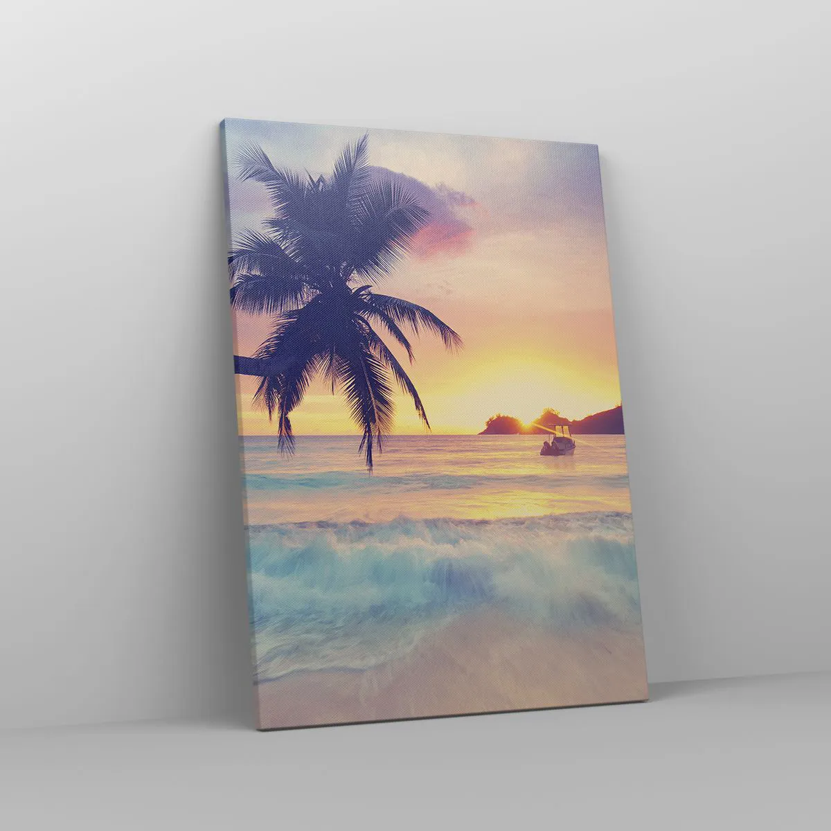 A tela é esticada na moldura. Os lados e bordas são impressos para criar uma continuação da imagem. O quadro está pronto para ser pendurado na parede. Cada produto tem um gancho ligado à moldura e um conjunto de montagem (parafuso + cavilha).