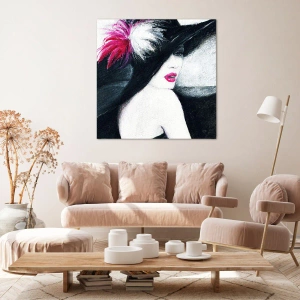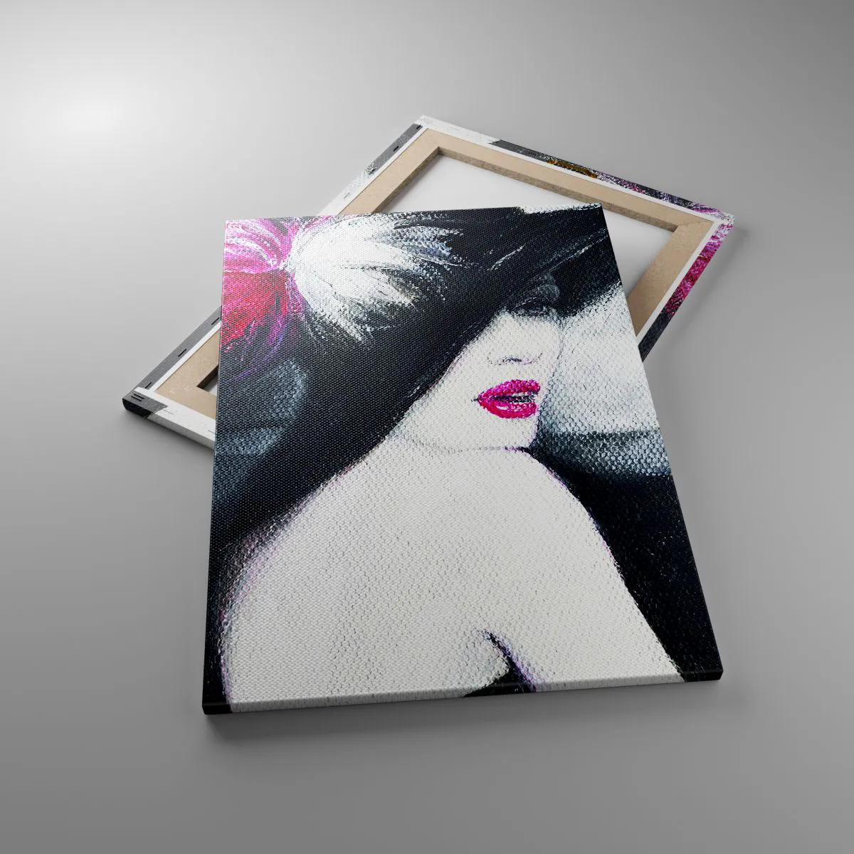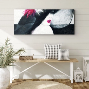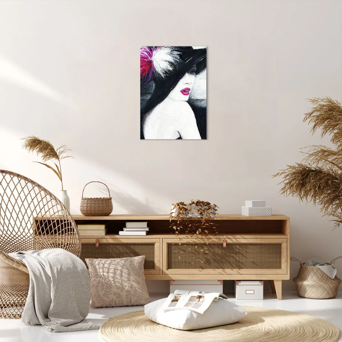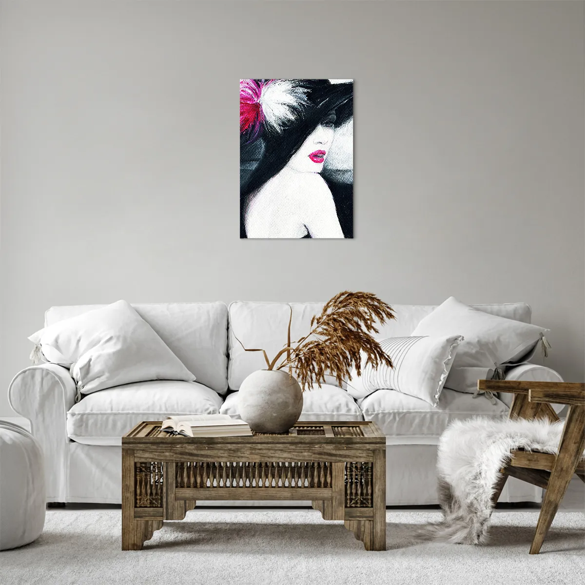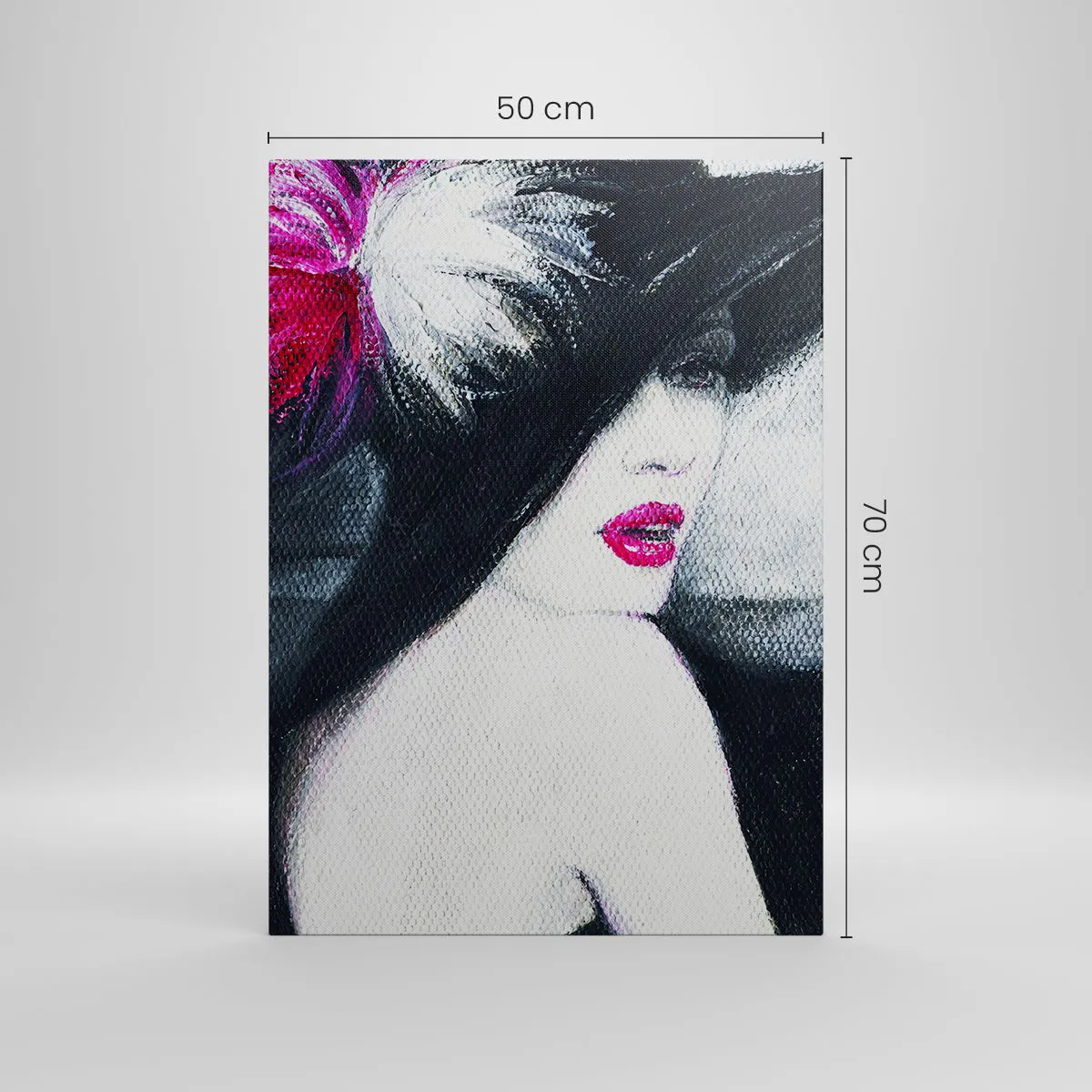 • Mulher com chapéu, rosto de mulher, lábios vermelhos, Preto e branco, Pessoas, Moda, Arte, Vintage e retrô, Para o escritório, Para o escritório, Para a sala de jantar, Para o hall, Para a sala de estar, Para o quarto, , Rosa, preto e branco, Vertical