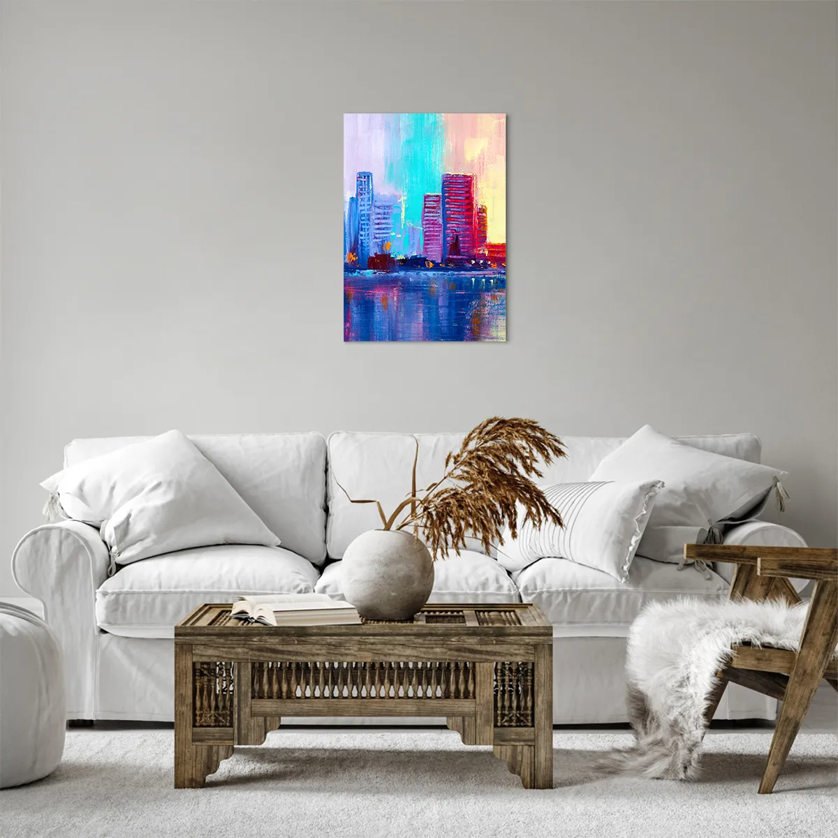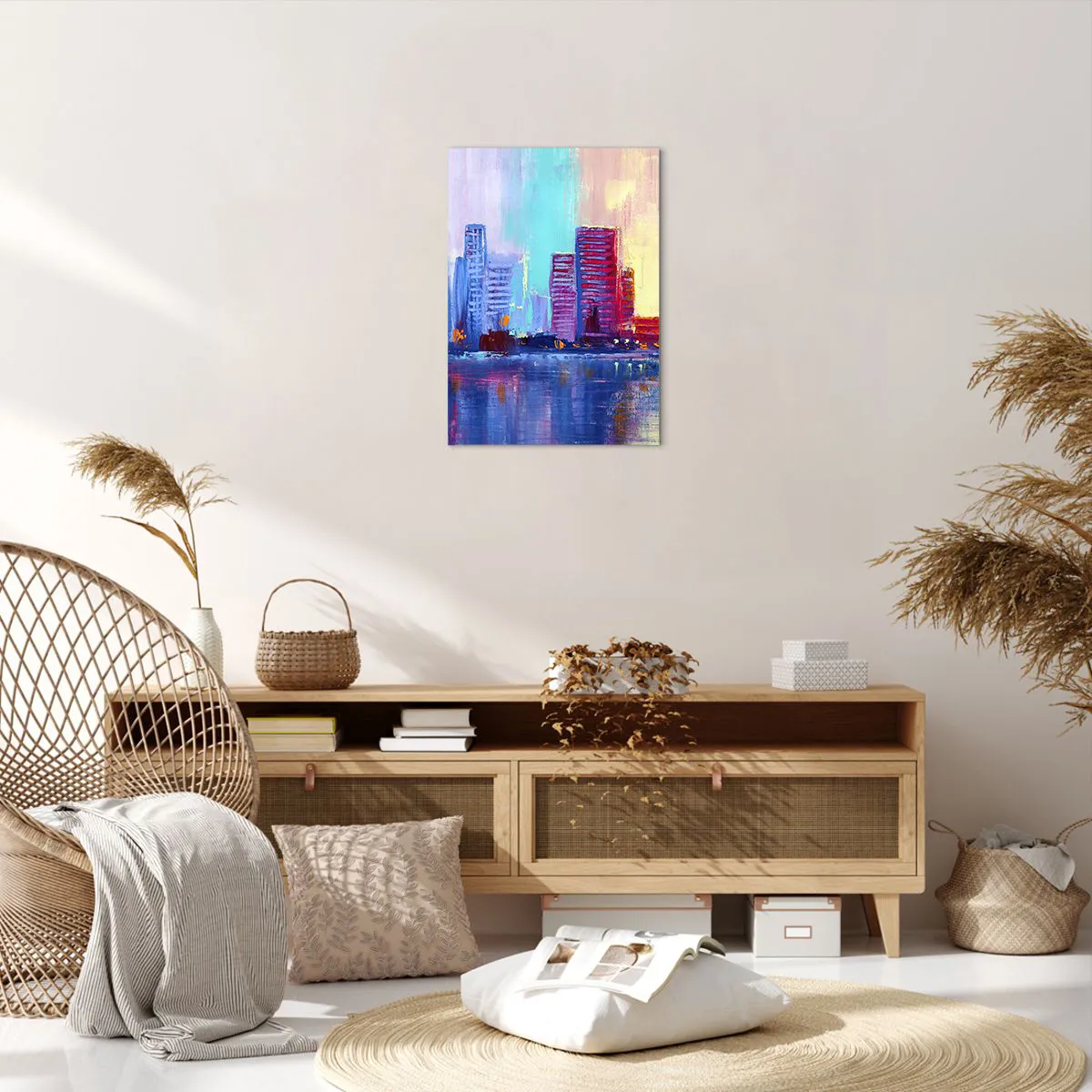 A tela é esticada na moldura. Os lados e bordas são impressos para criar uma continuação da imagem. O quadro está pronto para ser pendurado na parede. Cada produto tem um gancho ligado à moldura e um conjunto de montagem (parafuso + cavilha).