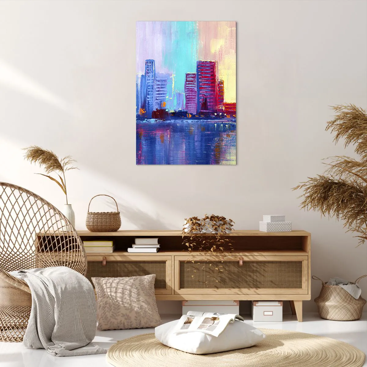 A tela é esticada na moldura. Os lados e bordas são impressos para criar uma continuação da imagem. O quadro está pronto para ser pendurado na parede. Cada produto tem um gancho ligado à moldura e um conjunto de montagem (parafuso + cavilha).