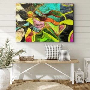 Quadro em tela - Uma composição abstrata com manchas coloridas e linhas dinâmicas. - 70x50cm - O movimento é vida - Decoração de parede moderna para a sala de estar e quarto ARTTOR