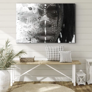 • Retrato de uma mulher, mulher, afro-americana, África, Preto e branco, Cultura, Pessoas, Para o escritório, Para o escritório, Para a sala de jantar, Para o hall, Para a sala de estar, Para o quarto, Branco, Preto, Cinza, Preto e Branco, Vertical