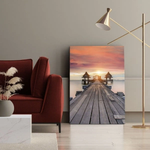 A tela é esticada na moldura. Os lados e bordas são impressos para criar uma continuação da imagem. O quadro está pronto para ser pendurado na parede. Cada produto tem um gancho ligado à moldura e um conjunto de montagem (parafuso + cavilha).