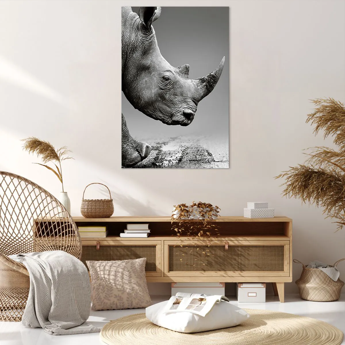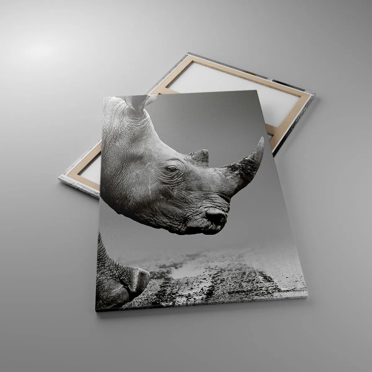 A tela é esticada na moldura. Os lados e bordas são impressos para criar uma continuação da imagem. O quadro está pronto para ser pendurado na parede. Cada produto tem um gancho ligado à moldura e um conjunto de montagem (parafuso + cavilha).