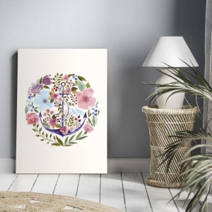 - Esta aquarela retrata uma âncora cercada por um arranjo floral em tons pastéis. Detalhes sutis e um motivo náutico criam uma decoração elegante que complementa perfeitamente interiores inspirados na natureza e no mar.