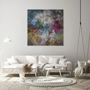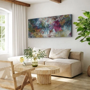 - Esta pintura retrata uma abstração colorida que lembra flores em plena floração. Uma decoração artística que traz a harmonia, a energia e a beleza da natureza para um interior.