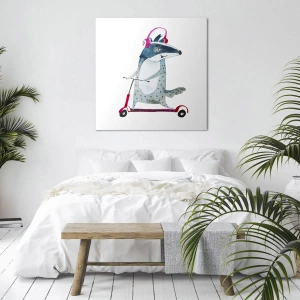 A pintura "Alegria do Texugo" é uma composição charmosa e divertida que encanta pela sua leveza e criatividade. Ela retrata um texugo pilotando uma scooter usando fones de ouvido rosa, criando uma imagem alegre e vibrante. Esta obra é a escolha perfeita para quem aprecia decorações bem-humoradas e não convencionais.