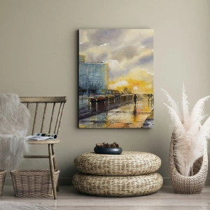 O motivo do pôr do sol sobre o calçadão simboliza um momento de descanso e a beleza dos momentos cotidianos. O jogo de cores, de tons quentes de laranja a delicados azuis, cria uma composição harmoniosa que traz uma atmosfera única e aconchegante ao interior. Esta é uma pintura perfeita para quem aprecia arte inspirada na natureza e em emoções sutis.