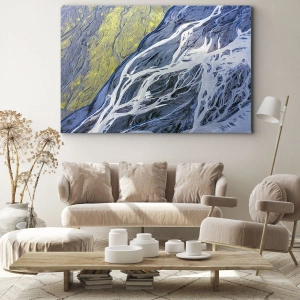 - A pintura retrata uma vista aérea abstrata de leitos de rios sinuosos, reproduzida em tons harmoniosos da natureza. Uma decoração elegante e moderna.