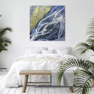 A composição se destaca pela combinação única de cores sutis e formas expressivas. Os rios criam linhas abstratas que exalam paz e harmonia. É a decoração perfeita para uma sala de estar, escritório ou outros espaços, introduzindo uma atmosfera de natureza e criatividade.
