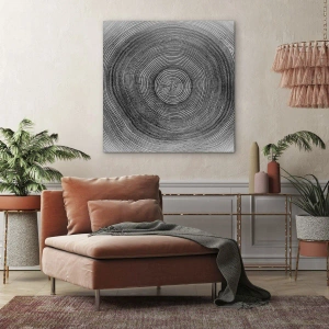 - A pintura retrata um padrão de anéis de árvore em preto e branco, revelando um corte transversal do tronco. Uma decoração minimalista e elegante que traz harmonia e sutileza a qualquer interior.