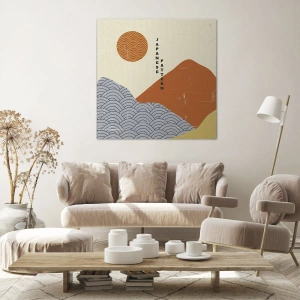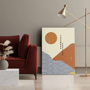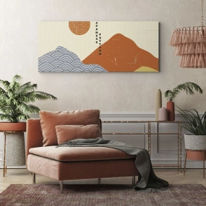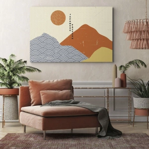 Quadro em tela - Padrões japoneses com montanhas, sol e estilo minimalista - 70x50cm - No espírito japonês - Decoração de parede moderna para a sala de estar e quarto ARTTOR