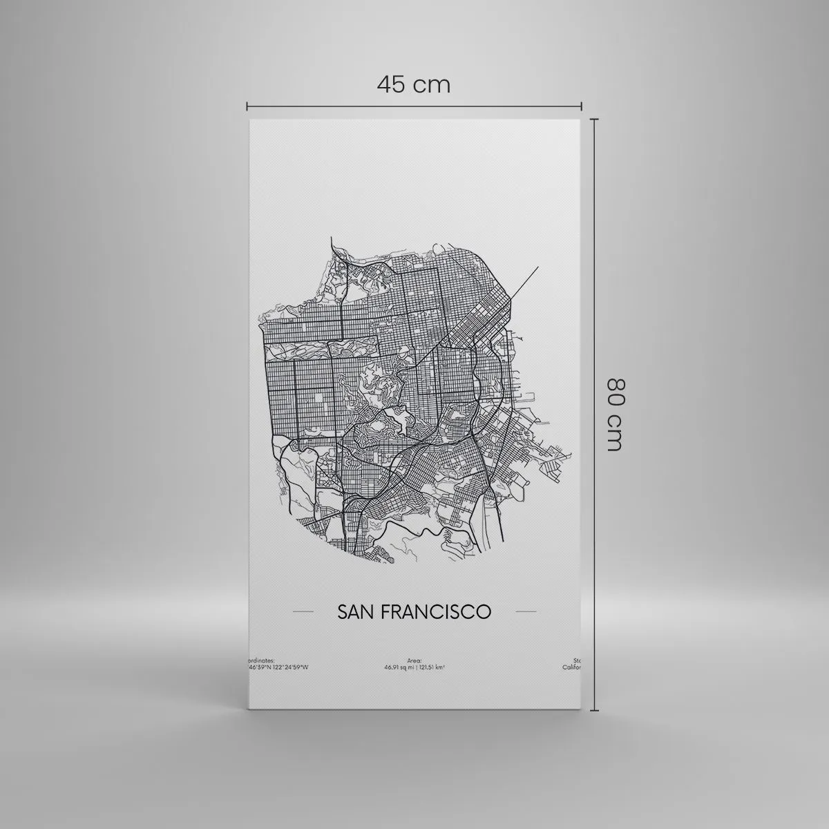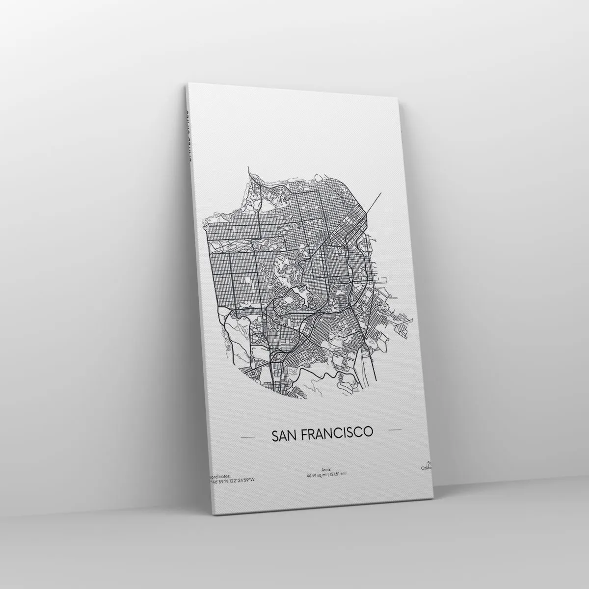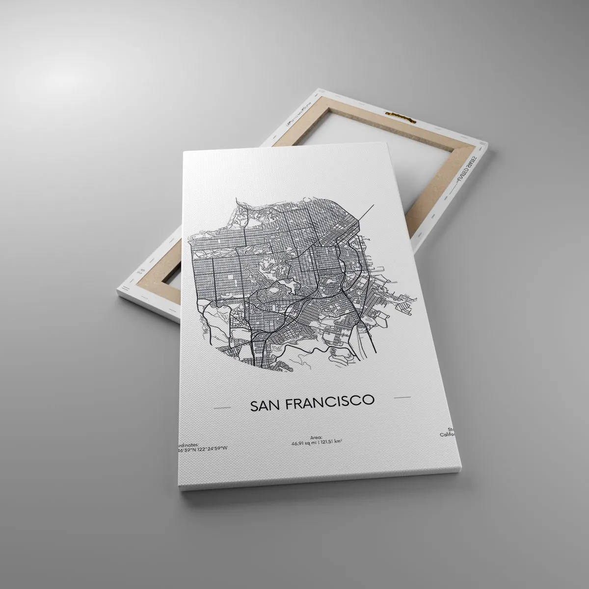 A tela é esticada na moldura. Os lados e bordas são impressos para criar uma continuação da imagem. O quadro está pronto para ser pendurado na parede. Cada produto tem um gancho ligado à moldura e um conjunto de montagem (parafuso + cavilha).