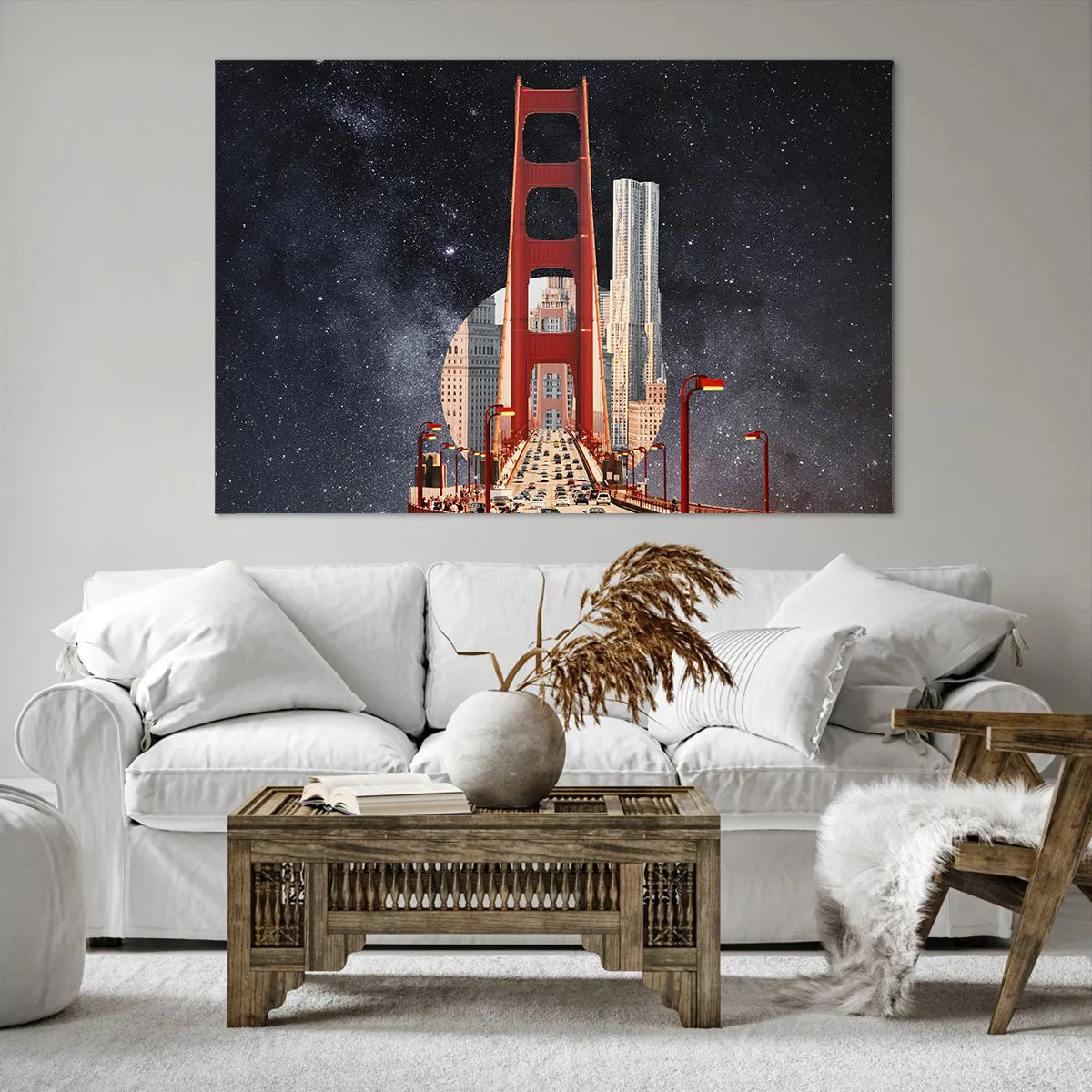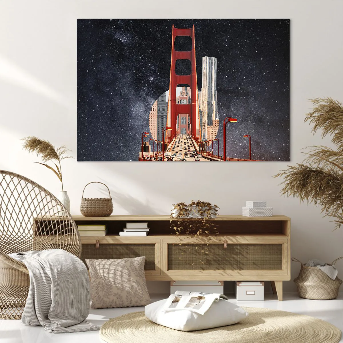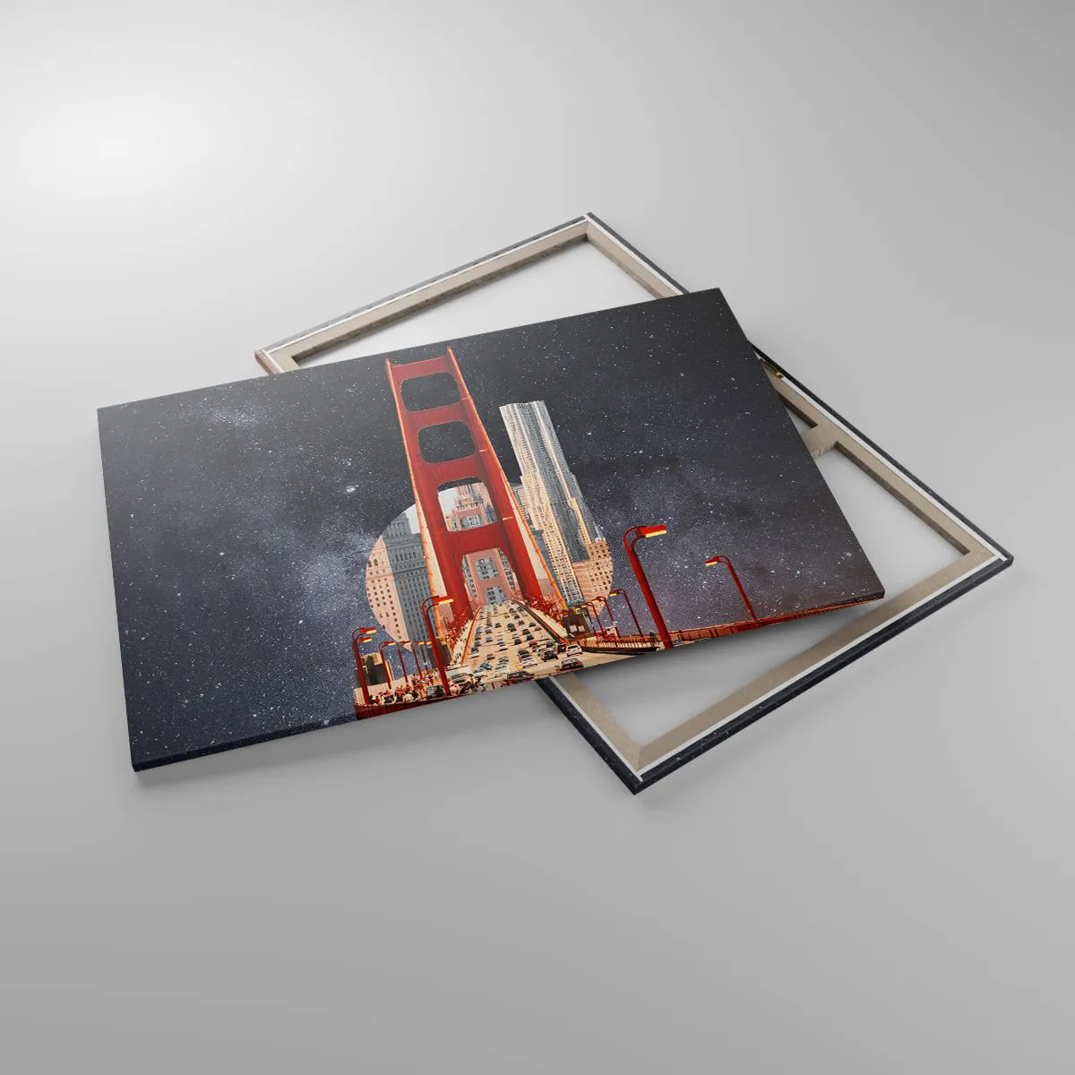 A tela é esticada na moldura. Os lados e bordas são impressos para criar uma continuação da imagem. O quadro está pronto para ser pendurado na parede. Cada produto tem um gancho ligado à moldura e um conjunto de montagem (parafuso + cavilha).